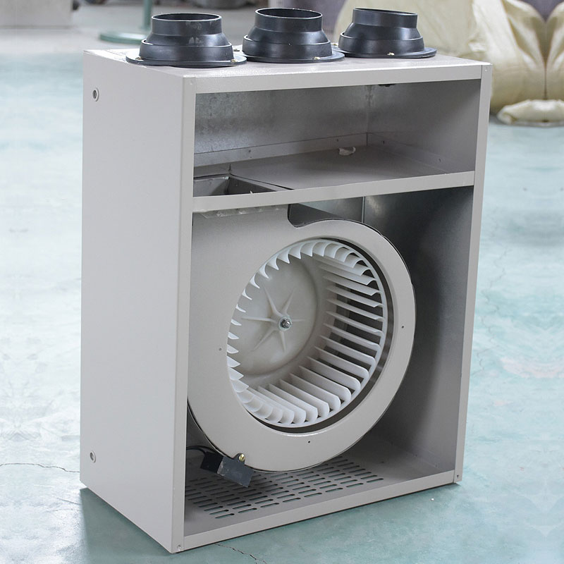 誘導風機:又稱射流風機、接力風機。它通過誘導,進行空氣的傳遞。本身的風量很小。公共設施中常用在車庫的通風系統(tǒng)中,攪勻、清除局部空氣死角,使局部空氣得到改善。