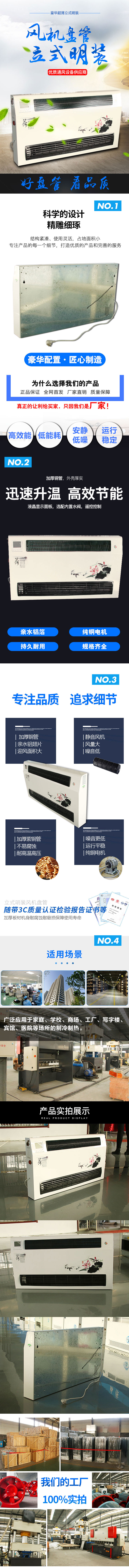 立式明裝風(fēng)機(jī)盤具有管效率高,能量足,風(fēng)量大,噪音低,安全可靠,壽命長的優(yōu)點,是明裝風(fēng)機(jī)盤管。盤管采用優(yōu)質(zhì)無縫紫銅管與鋁質(zhì)正弦波紋型散熱片,經(jīng)過液壓或機(jī)械漲管而成。