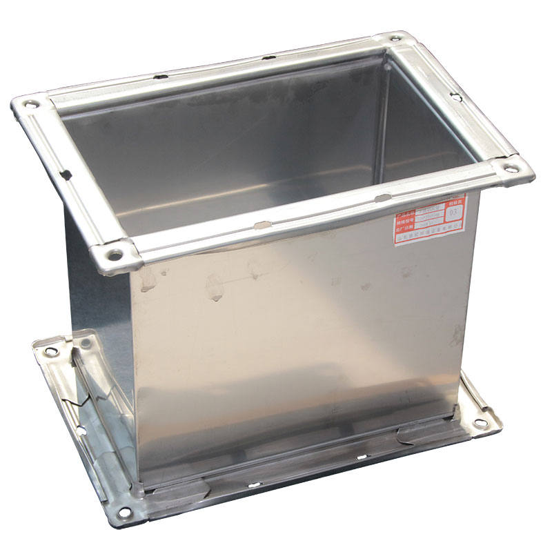 板法蘭主要由角碼、法蘭夾,及與風(fēng)管一體相連的法蘭連接,這種形式風(fēng)管雖然造價(jià)較低(減少了角鋼用量,減少了制作角鋼法蘭的人工用量),但是實(shí)際應(yīng)用起來不如角鋼法蘭牢固。