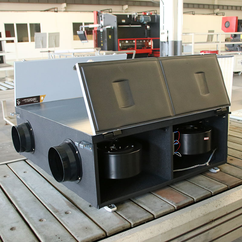 新風(fēng)換氣機(jī)是根據(jù)在密閉的室內(nèi)一側(cè)送風(fēng)另一側(cè)引風(fēng),則在室內(nèi)會(huì)形成“新風(fēng)流動(dòng)場”的原理進(jìn)行設(shè)計(jì)研制的。它依靠機(jī)械送風(fēng)、引風(fēng),強(qiáng)迫在系統(tǒng)內(nèi)形成新風(fēng)流動(dòng)場。