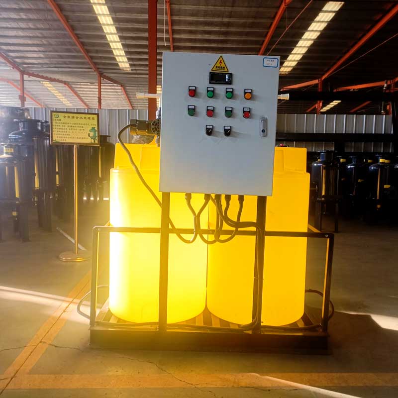一體化加藥裝置是集藥劑制備與投配于一體的投藥裝置,由溶液攪拌桶、藥劑輸送泵計(jì)量設(shè)備及操作平臺(tái)組成,可向重力管道或壓力管道內(nèi)(如管道混合器)投藥。